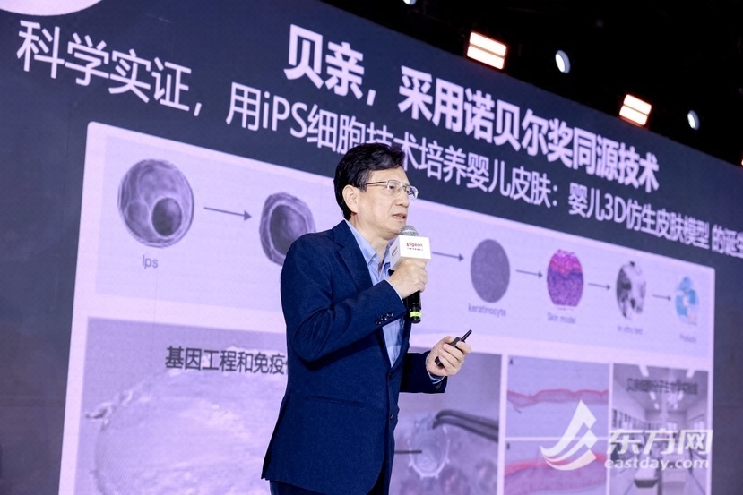 在CBME新品发布会的舞台上,婴儿3D仿生皮肤模型以科学破解宝宝的肌肤诉求。据贝亲首席科学家、上海市“白玉兰奖”获得者贺来健博士介绍,婴儿3D仿生皮肤模型采用诺贝尔奖同源的iPS细胞(人工诱导多能干细胞)技术,进行了基因工程和免疫修饰,培养构建成具有特定婴儿表皮特性的表皮皮肤模型。这样就拥有了一个更科学、更完善的婴儿护肤品评价体系,破解婴儿之不能言的皮肤养护诉求。