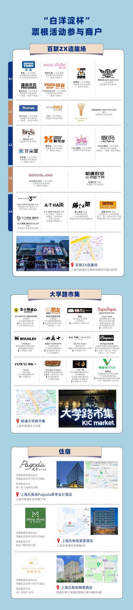 结合最后一轮比赛的线下观赛,赛事主办方将赛事与文旅商体展联动,以“足球+夜经济”为核心,举办足球嘉年华活动,融合比赛、地方特色、餐饮美食等内容,在杨浦区江湾体育中心周边打造消费新体验。赛事将联动江湾体育中心周边的大学路商业街和百联ZX造趣场,推出“凭比赛票根享折扣”活动,超过30家指定商铺推出“白洋淀杯限定优惠”,提供多样化、个性化的消费体验。嘉年华活动以“体育赛事引流+文旅资源变现”模式激活区域“留量经济”,为参赛运动员和观赛市民带来沉浸式体旅盛宴。