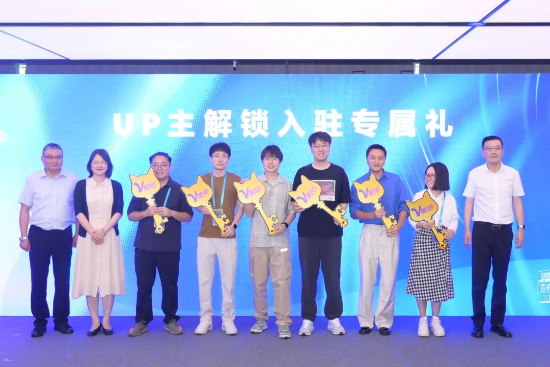 现场,上海报业集团党委书记、社长李芸,上海广播电视台(集团)党委副书记、副台长、总裁宋炯明,市发改委副主任、一级巡视员陈石燕,市文旅局副局长、市广电局副局长、一级巡视员罗毅,市人社局二级巡视员张骁,瑞安新天地行政总裁CEO张斌等为首批入驻的UP主代表颁发“金钥匙”和“串门卡”。