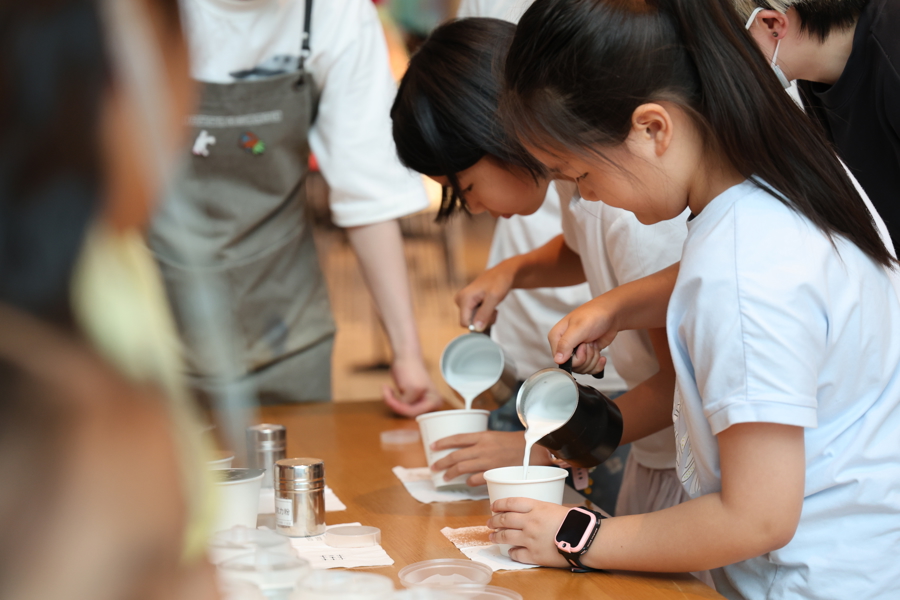 上海交响乐团联合上海少年儿童图书馆推出的新型阅读空间“蜜宝书屋”深受孩子们的喜爱,《天鹅湖》《胡桃夹子》《彼得与狼》等百余册绘本,让小朋友跟着优雅的天鹅公主、勇敢的克拉拉、机智的小彼得,一起跳进柴可夫斯基、普罗科菲耶夫等大师用音符编织的童话世界。而小小咖啡师体验课能让爸爸妈妈品尝到小朋友亲手制作的拿铁,现场参加互动游戏打卡还能获得特别版定制礼品。