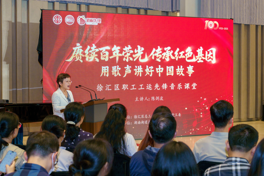 日前,赓续百年荣光传承红色基因·用歌声讲好中国故事——徐汇区职工工运先锋音乐课堂在上音歌剧院唱响,共谱百年工运乐章。来自徐汇区各基层工会的近150名职工代表聆听了这场精彩纷呈的职工音乐课堂,在近两小时的艺术熏陶中重温党史和百年工运历史、聆听党领导下的工运故事,催人奋进的旋律荡涤心间引发现场阵阵共鸣,歌声中处处传递着对革命先辈们的敬仰和对信仰的坚守。