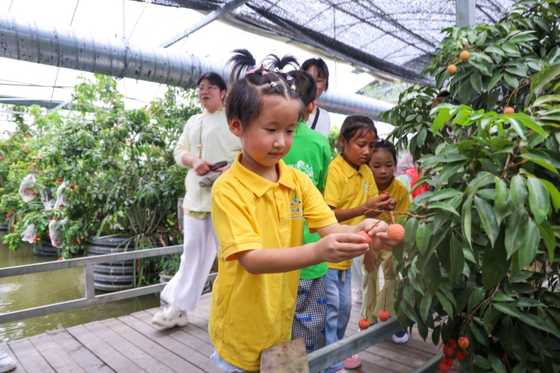 “现摘现吃,比外地运来的荔枝新鲜多了。”市民孙女士连尝三颗仍意犹未尽。此时,其他游客已经按捺不住兴奋,拿起采摘篮直奔采摘大棚,体验“现摘现吃”的乐趣。
