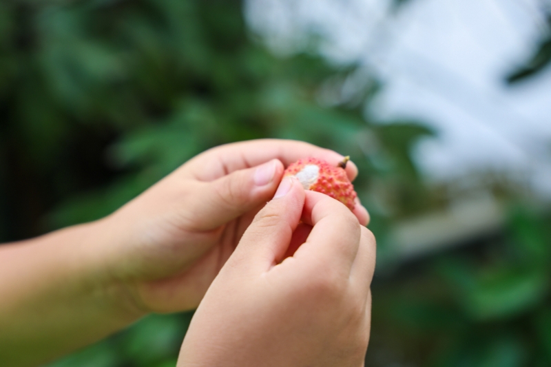 “慢点摘,转着圈拧一下,果蒂就掉了!”来自市区的游客王女士一边教自己儿子采摘荔枝,一边把刚摘下的一颗剥进嘴里,“上海居然也长出了新鲜的荔枝,这味儿比超市买的新鲜多了,果肉晶莹剔透,咬下去的瞬间满嘴清甜味儿!”