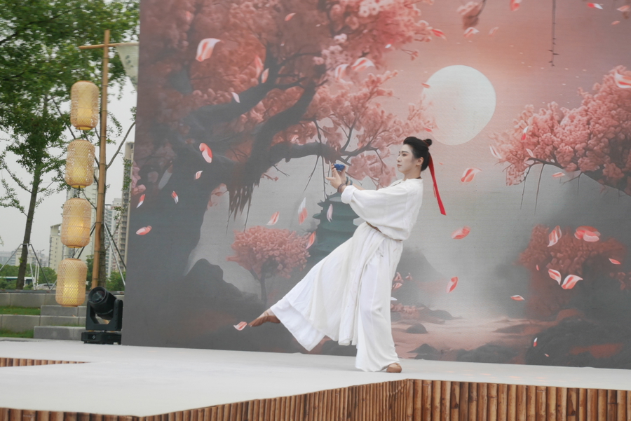 除了精彩的格斗大赛,活动现场亮点纷呈。主舞台上,国风乐团用丝竹奏响当代动漫金曲,穿插古风流行歌曲演唱;汉服品牌带来新款走秀,衣袂飘飘,尽显华夏衣冠之美。创意市集汇聚50余家优质商户,非遗手工艺人现场展演皮影戏等传统技艺。投壶、捶丸等趣味互动活动,也让市民游客沉浸其中,感受传统文化魅力。