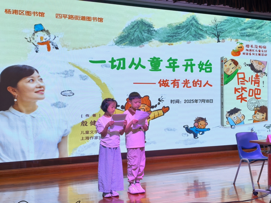 今天下午,杨浦区图书馆四平路街道图书馆儿童友好阅读空间内,“橙长没烦恼”儿童友好阅读系列活动之“启思·经典共赏”主题活动——“一切从童年开始——做有光的人”专题讲座举行。活动特邀儿童文学作家、上海市作家协会副主席殷健灵,与小读者共赴一场关于童年的文学盛宴。