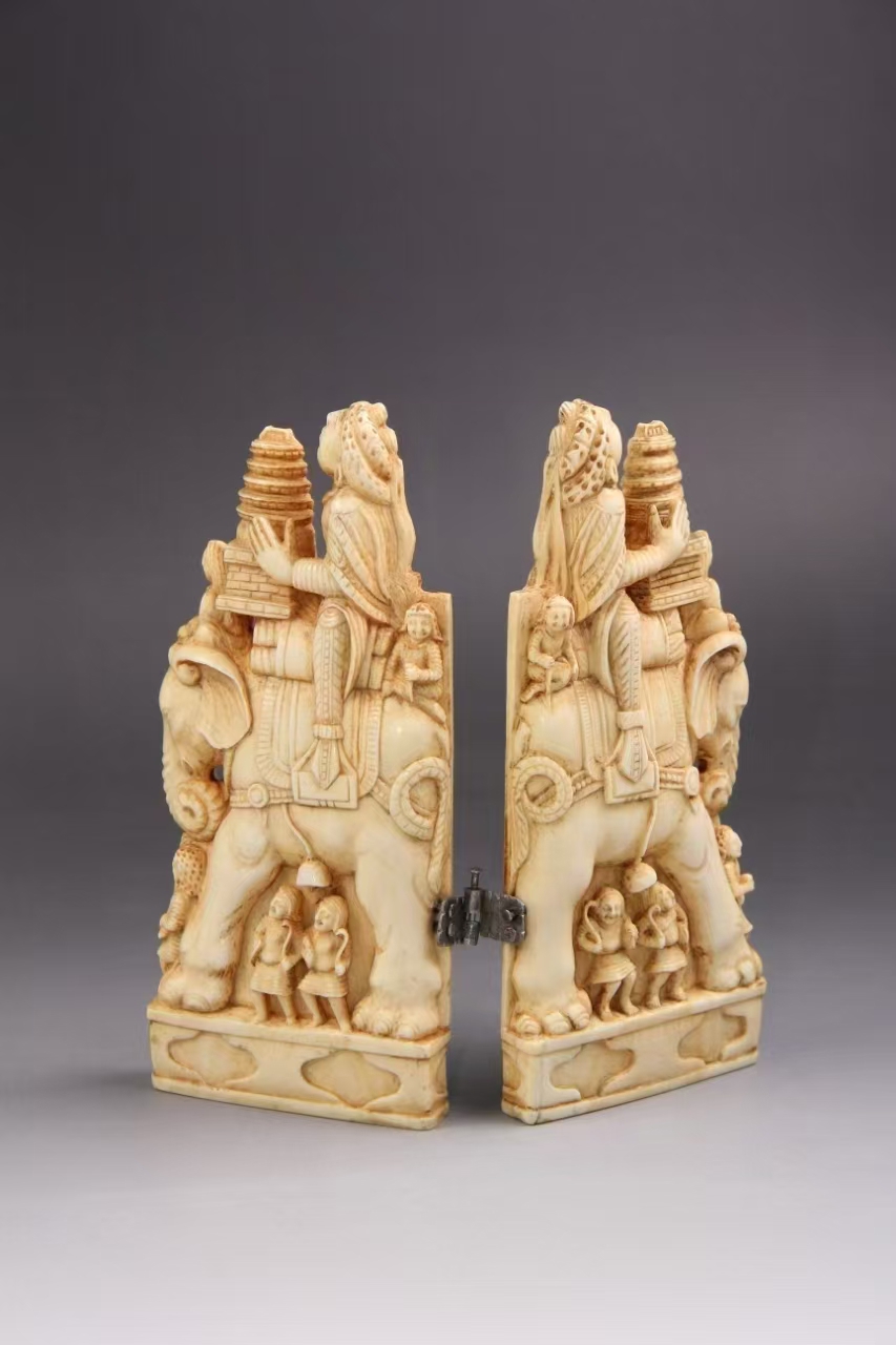 在“塔林”一章中,艺术家林舒拍摄的定州开元寺塔、泛舟禅师塔等影像之塔,与文物陈列柜中的实物之塔对应。自2017年以来,林舒已遍访八十余座佛塔。而作为唐初中印文化交流的重要历史见证,瓜州县博物馆镇馆之宝《象牙造像》是值得仔细品赏的一座实物宝塔,279位人物细如毫发。它原藏于榆林窟,原件现藏于中国国家博物馆。本次展出的是由北京工艺美术研究院象牙雕刻大师赵德兴于1984年依原件复制的唯一作品。