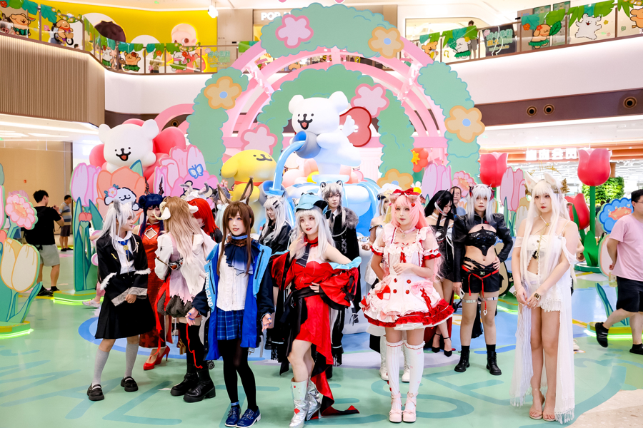 拎着挂满IP公仔的痛包,在全市首个公交“痛站”坐上免费的《明日方舟》主题公交痛车,打卡随处可见的游戏经典台词地贴,在“罗德岛宿舍”主题化妆间打扮成美美的游戏人物与专业Coser一起大巡游,和同好们一起在举行IP装置前拍照留念……今天的“元界NeoWorld”元宇宙街区成为了二次元的海洋,更是一片“痛”的海洋。