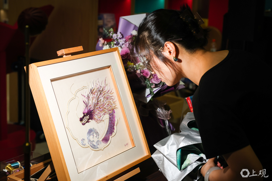 祝心聆动情回忆:十年间,她从学生变妻子、再变母亲,身份转换间,上海提供了丰沛的信息、包容的氛围与敢为天下先的勇气。她将自己的作品定义为“新时代的‘海派刺绣’”,并呼吁更多年轻创作者加入非遗创新赛道,“让传统活在当下,让中国刺绣成为世界语言”。