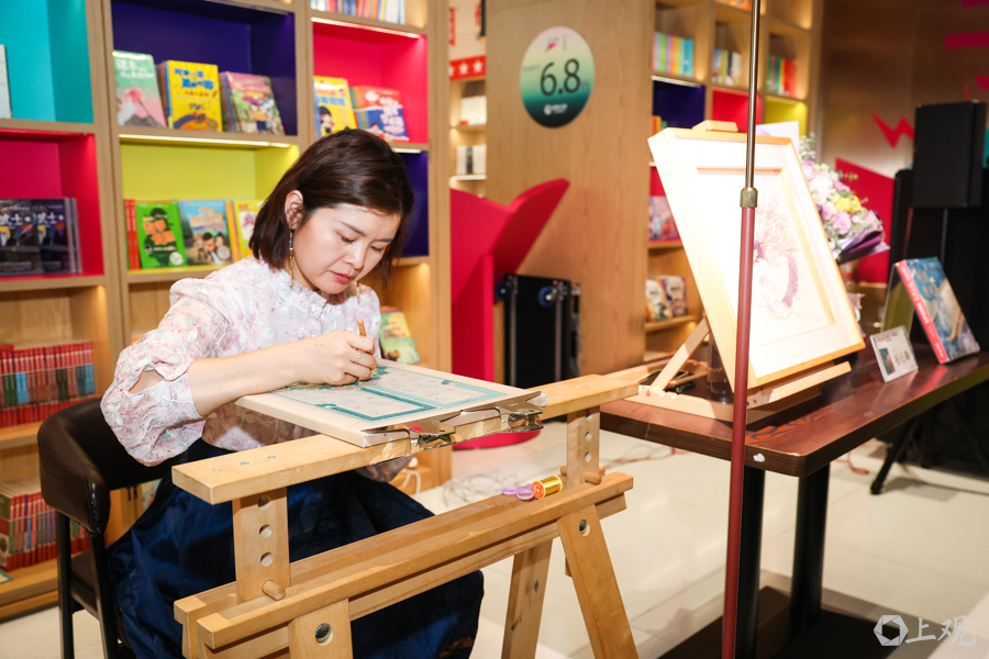 城市笙歌|“紫气东来”化作针线,上海书城变身“绣坊”