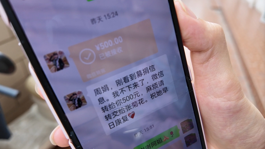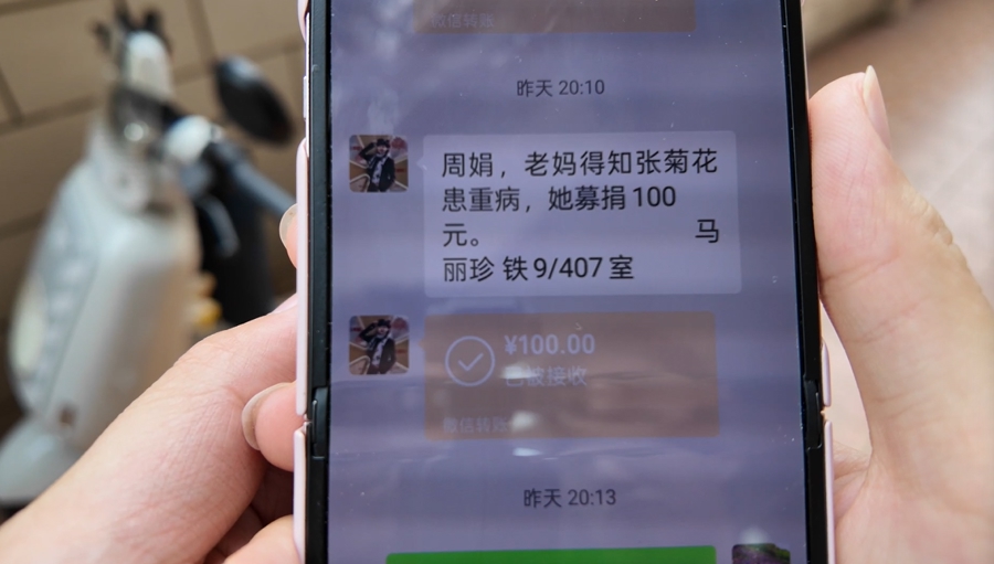 虞净说,收到这些捐款,居委干部都非常感动,过去是张阿姨在守护小区的环境,现在换成小区热心邻里来守护住进ICU的她。现在,张阿姨有所好转,渐渐有了意识,虽然不知道治病还要多久、最终要多少医药费,但是有了大家伙的关心,相信他们一定会渡过难关!
