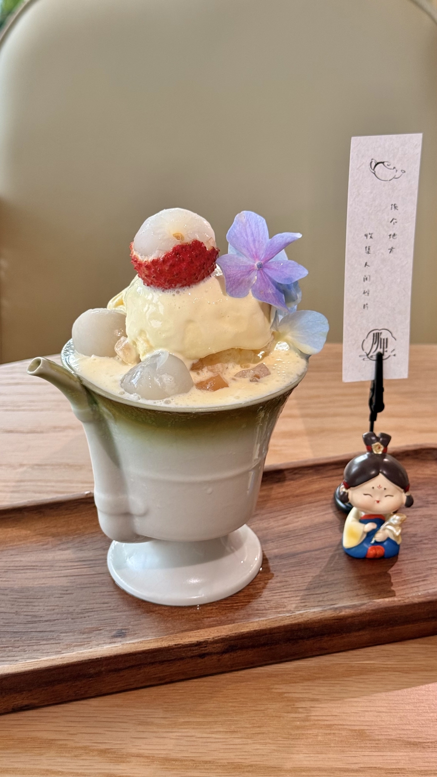 比如,奉博将展览中来自郑州大象陶瓷博物馆三彩吸管杯1:1复原改造成吸管杯,并结合大热影视剧《长安的荔枝》,在文创店内提供用这个吸管杯作为盛放容器的大唐同款甜品“酥山”荔枝冰。