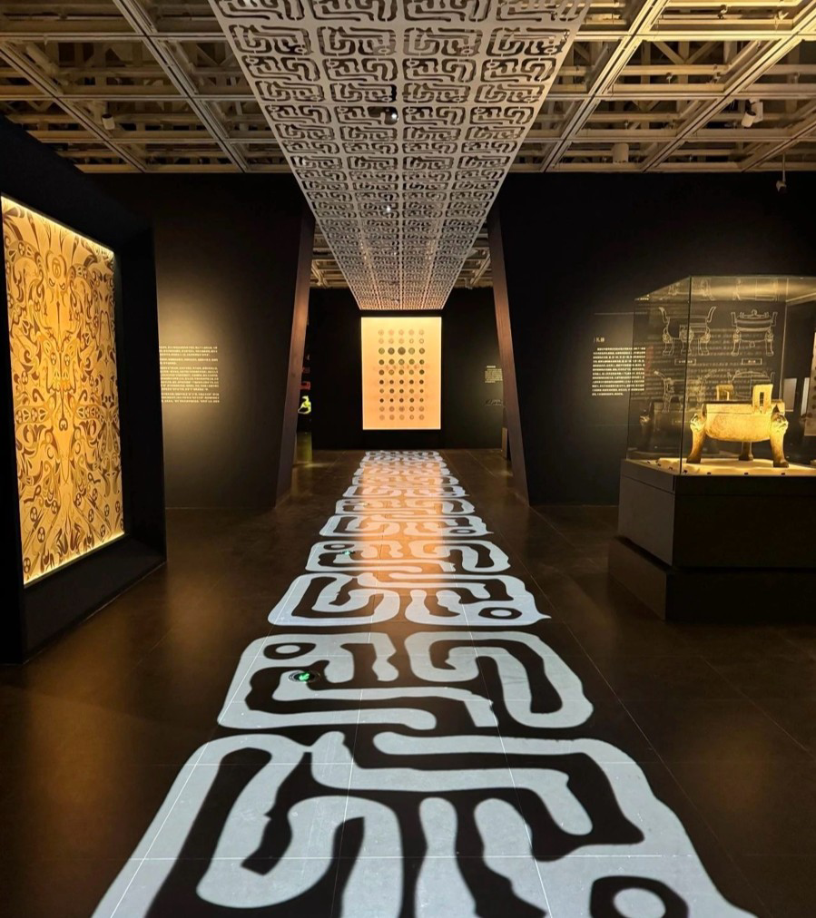 闵博的策展团队很注重展览设计的创意和美感。比如,“马王堆展”采用轻盈灵动的展示理念,以垂落的帷幔替代部分墙面,营造出如梦似幻、飘然欲仙的感觉。“楚风烈”围绕楚国器物的纹饰风格元素设计“蟠虺纹”投影长廊,凸显光影交错之美。