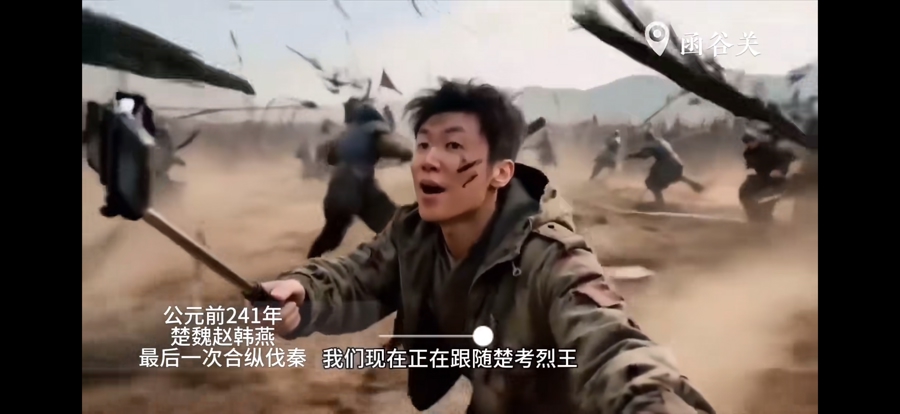 “小迪哥”用AI动画让自己“穿越到”公元241年的函谷关战场上。