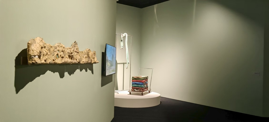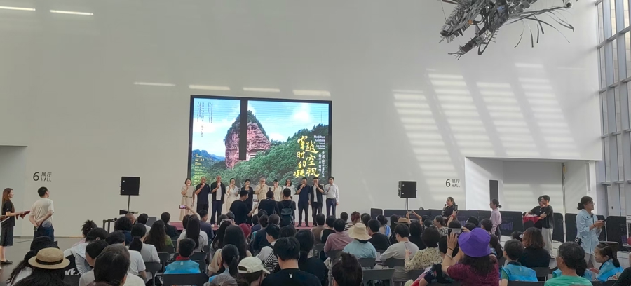 展览中的当代艺术作品丰富了麦积山石窟艺术的展示形式和展示方式。谭勋介绍,这些当代艺术作品来自33位当代艺术家的创作,包括雕塑、绘画、影像、行为、装置等,希望彼此形成对话的状态。“我们将麦积山石窟艺术的密码重新编译,进行深入研究和学习,以当代艺术创作来呈现,并在展览中融合、交织在一起,希望提供给观众对麦积山石窟艺术新的思考和认知方式。”