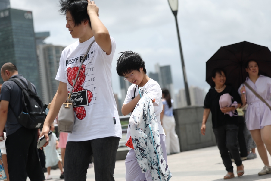 城事 | 上海大风预警,游客抓紧帽子以防被疾风吹跑