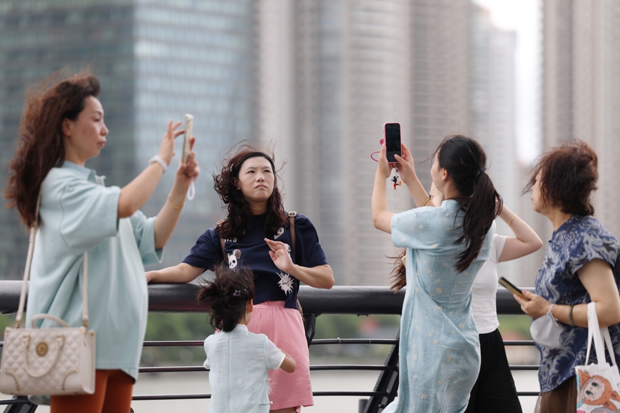 外滩平台上,尽管风力增大,并未阻挡市民和游客的热情。