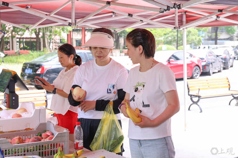 为解决居民买菜难题,居民区党总支在“临居里”社区合伙人平台的支持下,引入了多家蔬果经营者,打造了社区便民“微菜场”,效果非常好。如今,“微菜场”已进入多个小区,开展了近200场活动,惠及居民5000余人次。
