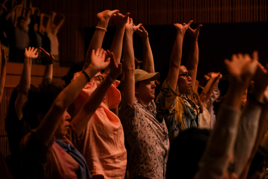 音乐会的最后一乐章是《天人合一》——深沉宁静的“羽音”世界,羽音在五音中属于“水”,与我们的肾脏和膀胱系统紧密相连。中医经典《黄帝内经》指出,肾是“封藏的根本”,是我们生命能量的仓库,羽音宁静、流动的声音频率,就像是专门为稳固肾气、沉降虚浮的阳气而设计的天然能量,在一筝一笛的旋律下,引导现场观众卸下心头烦忧,重归身心宁静。正如编曲席勤所言:“我很喜欢这样的表现形式,在创作中我的内心也逐渐有了松弛感,也希望把这份松弛感在大暑的季节带给观众,让大家感受到音乐带来的不一样的凉爽意境。这次的改编是一次非常有意义的探索和创新,希望未来通过音乐更多、更好地展现中医文化的博大精深。”