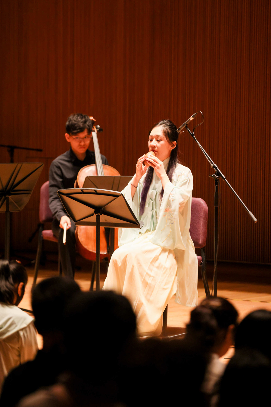 音乐会由中国鼓作为开篇,营造出中华民族传统的仪式感。在古人眼中,无论汉族,还是少数民族,鼓都是通神的乐器。以大鼓响起,引导人们逐渐进入“天人合一”的状态。接下来五个乐章选择了中国经典古曲《阳关三叠》《梅花三弄》以及江南乐曲《声声慢》和《烟雨唱扬州》等作品进行重新编配,由小提琴、中提琴、大提琴、低音提琴、打击乐作为和声基础部分,在各乐章中加入埙、竹笛、箫、古琴、古筝作为主奏乐器,弦乐音域较广、音色柔和;打击乐软锤马林巴音色轻柔,两者相融并与民族乐器的主奏相映成趣,带人们进入轻柔、温暖的音乐世界。编曲席勤介绍,此次音乐会的创作特别强调和声,“和声的色彩变化,应和了中医的阴阳五行体系,实现了‘五音-五脏-五志’的对应。”