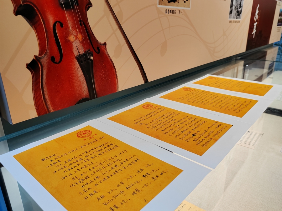 当然,聂耳的天赋也是极其出众的。在参观这封家书时,工作人员特意提醒观众注意,信纸上盖着一个“耳耳耳耳”的红色印章,再通过一段讲解,一个从小听觉敏锐、善于模仿各种声音“鹦鹉学舌”的聂耳形象便活生生地跃然纸上。原来,聂耳原名聂守信,家书上的落款便是“守信”二字,但因为耳朵实在太敏锐,从小便有一个绰号“耳朵先生”,再加上当时的繁体字“聶”自带“三只耳朵”,因此,聂耳也被称为“四耳先生”,后来就干脆改名为了聂耳。