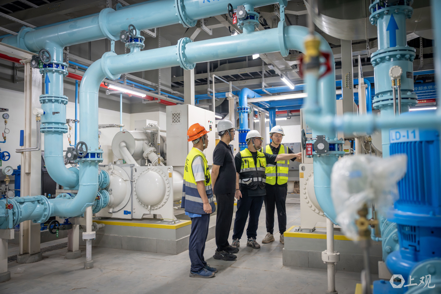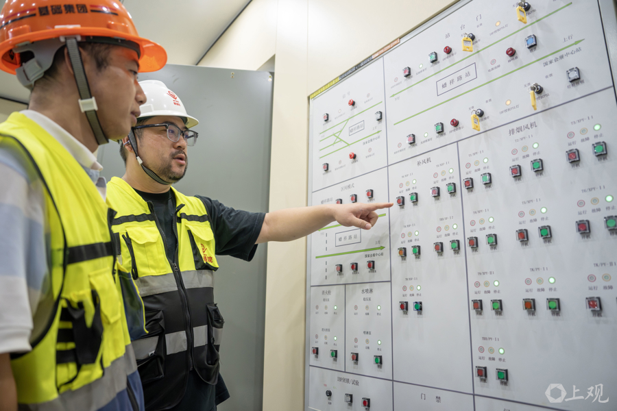 工作人员检查蟠祥路站空调控制设备。