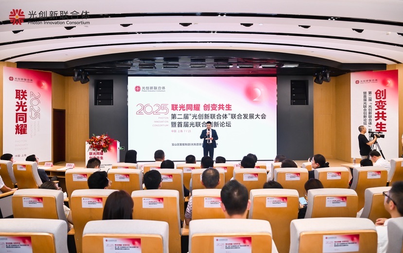 2025年7月23日,第二届光创新联合体联合发展大会暨首届光联合创新论坛在上海宝山区大场镇文化中心举办。大会以“联光同耀·创变共生”为主题,聚焦“光”之媒介,从产业互联系统创新、全球视野下的国家战略以及聚创产业发展新场景三大维度,见证了光制造领域协同创新的里程碑,共同探索了产业高质量发展的新路径。 此次活动获得了行业领航者的鼎力支持与社会各界的广泛关注。中国工程院庄松林院士,中国管理科学学会常务副秘书长张晓波,上海市计量协会会长王路,上海市经济和信息化委员会技术进步处副处长葛文政,上海市科委基地处副处长张露璐,中国管理科学学会智能制造专委会秘书长王正荣,上海市宝山区大场镇党委副书记、镇长魏明,宝山团区委书记肖寒,宝山区妇联党组书记、主席黄铁红等,以及产业链上下游先锋企业精英共200余人出席了盛会。 政产学研深度融合 共筑光制造创新高地 庄松林院士在致辞中肯定了光创新联合体在推动光学技术从实验室走向产业化、服务国家战略需求方面的重要价值;张晓波副秘书长则从管理科学与组织创新角度,深入剖析了协同创新对提升产业整体竞争力的关键作用;王路会长寄语联合体持续深化协同,勇攀科技高峰。魏明镇长在致辞中高度评价了联合体在促进科技成果转化和产业集聚方面的积极意义,并强调大场镇将支持联合体及成员单位扎根大场、深耕发展,共同推动区域科技创新与产业升级。 光创新联合体核心发起单位芬创科技创始人张岚回顾了联合体自2024年6月成立以来的历程,强调了“共担共享、信愿同行”的合作精神。溯洄设计创始人、光创新联合体首席战略官徐霍成介绍了联合体“无边界产业互联,有系统抱团创新”的模式,旨在通过连接与协作,打造光智造领域的共同体,该模式得到了与会企业的高度认可。 成果斐然亮点频出 多项举措夯实发展根基