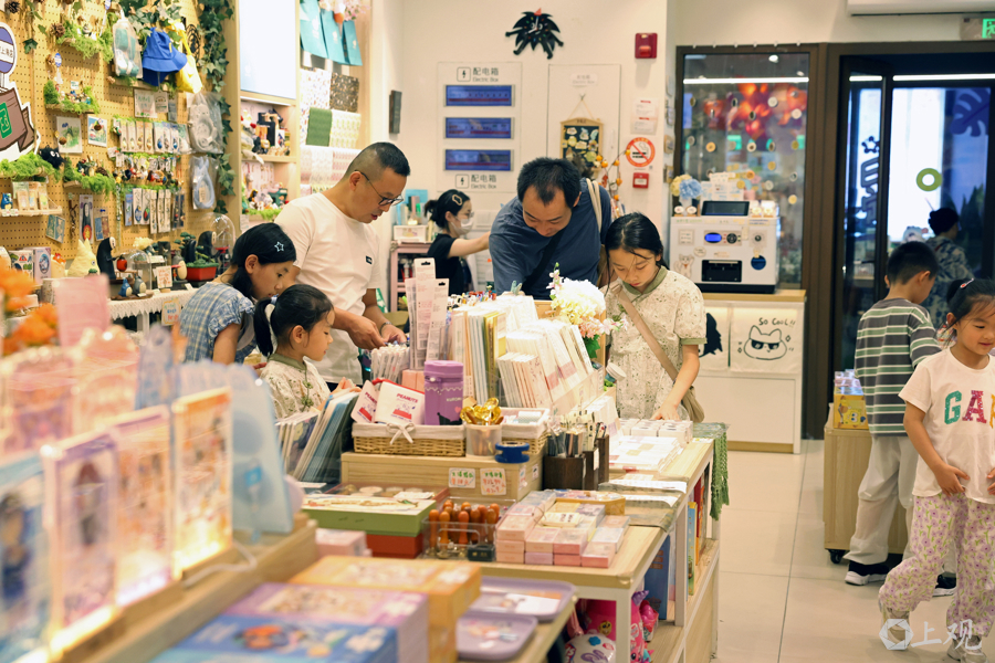 这是一家文创用品店,“小手拉大手”,顾客在选购心仪商品。