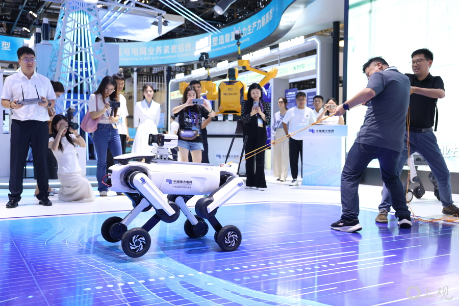 中国南方电网自主研制的新型四足巡维智慧狗——“吠云”,在拔河比赛中力气大于两个成年男性实现完胜。