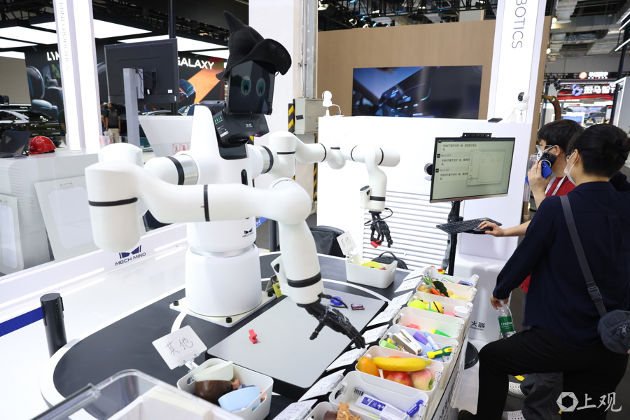 梅卡曼德通用具身智能机器人“手眼脑”产品高度智能,标准通用,可以完成叠衣服、挂衣服这样的“精细活”。