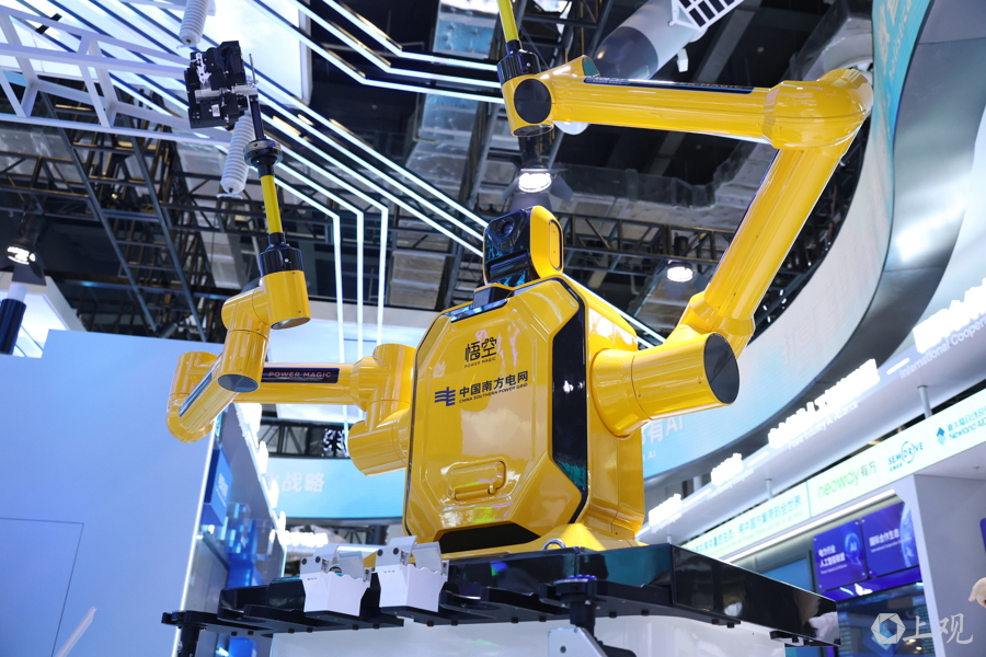 中国南方电网公司自主研制的MR(混合现实技术)遥操作带电作业机器人“悟空”已在实战场景顺利完成现场引线搭接作业。