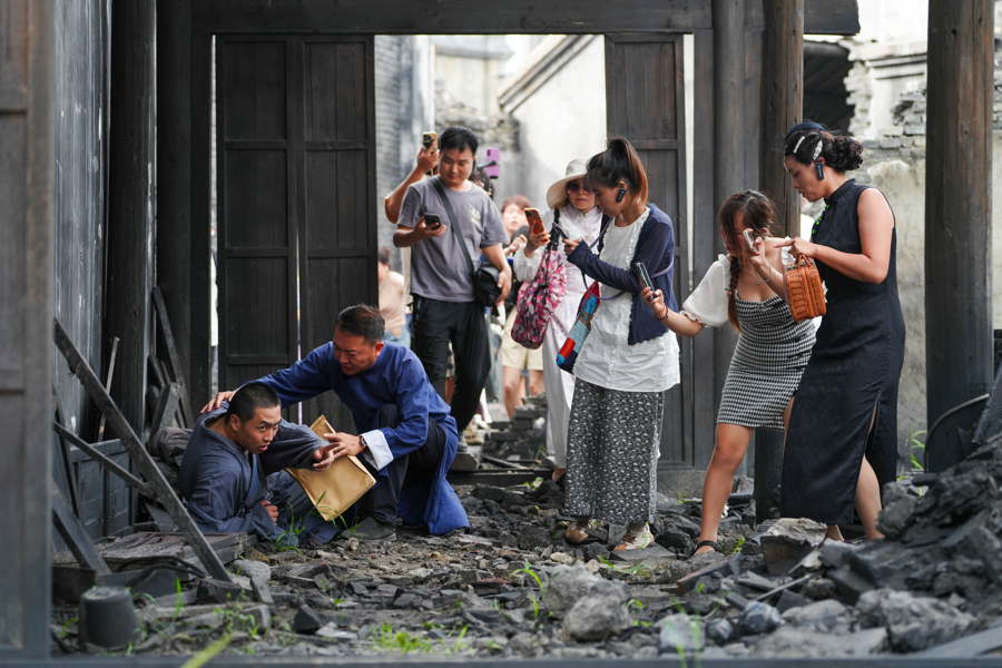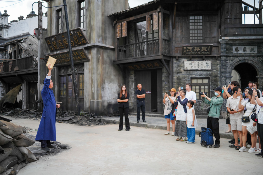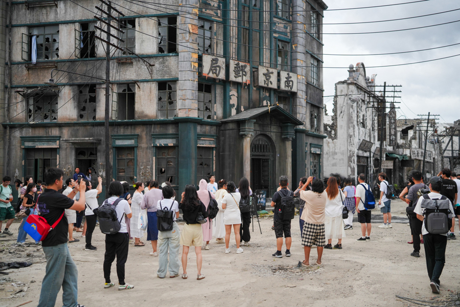 记者采访间隙,残破的“南京城”中,阴云密布的天空上恰好有飞机飞过,低沉的引擎声划破天际。一位刚看完电影的观众下意识对同伴感叹:“这声音像是电影里出现过……”这句不经意的感慨,瞬间拉近了历史与现实的距离,也道出了在电影诞生的实景地重温那段抗争岁月的特殊意义。