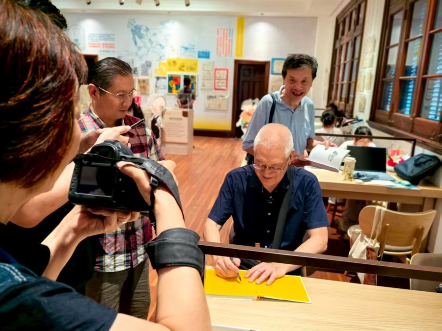张乐平之子张慰平为读者签名留念