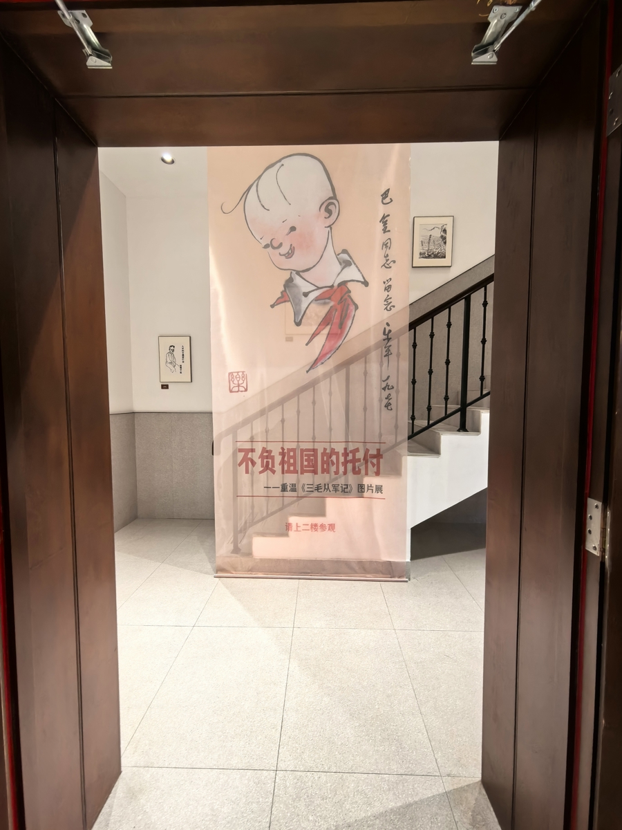在中国人民抗日战争暨世界反法西斯战争胜利80周年、张乐平诞辰115周年之际,7月26日,“不负祖国的托付——重温《三毛从军记》图片展”在巴金图书馆揭幕,张乐平之子张慰军说:“希望大家尤其是小朋友,都像三毛一样坚强、勇敢、快乐,热爱和平。”