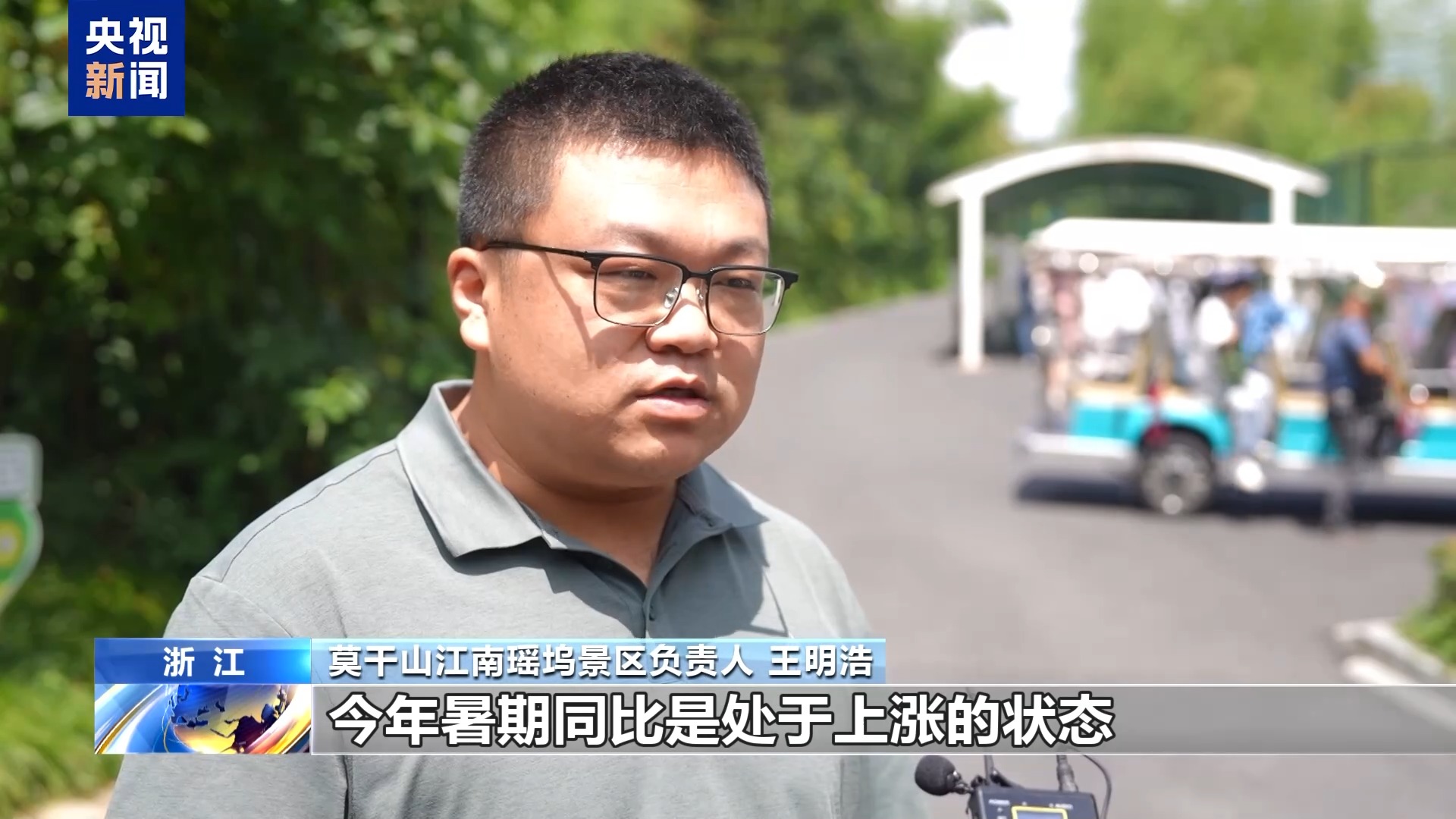 莫干山江南瑶坞景区负责人 王明浩:今年暑期同比是处于上涨的状态。同时散客的自驾游,以上海、江苏的苏州无锡常州,还有安徽的合肥、南京区域的自驾游客更多一些。