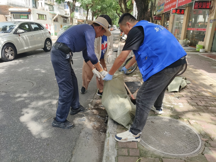“快!商铺屋顶的排水沟被落叶堵住了!”7月29日上午,塘园居民区灾害信息员在巡查时发现,沿街商铺屋顶堆积了大量杂物,极易造成排水管堵塞。他立即通过微信群上报险情,不到半小时,物业保洁队就带着专业工具赶到现场清理。与此同时,在钟楼居民区,另一支应急小分队正挨个疏通小区的下水道,确保排水畅通。