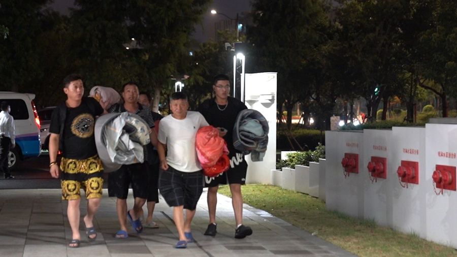 昨晚7时,位于浦东新区泥城镇的上海临港新科园灯火通明。一辆辆大巴、面包车、小轿车载着一群又一群打工人来到这里。一座空置厂房瞬间变成了工友们遮风挡雨的“家”。无数大功率风扇安置其间,饮用水,热食也被不断送来。厂房一侧还有个便利店成为工友们的好去处。作为泥城镇政府设置的集中安置点,这里汇聚了当地多个在建项目的人员,安置规模非常之大。中建二局上海分公司浦东医院临港院区项目工作人员告诉记者,面对台风“竹节草”,在做好项目现场相关工作的同时,他们仅用一个半小时,便将近900名工人兄弟快速安全转移安置妥当。之后,项目还安排专人进行24小时的值班工作,为工友们排忧解难。在记者采访时,他们正在协调预订早餐,往后几天,工友们的伙食也将升级。