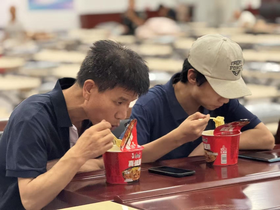 晚上9时,安置点内飘起香气,在这里生活了20多年的张志伟熟门熟路地领取方便面,泡开后,红烧牛肉面的香味瞬间溢开来,“撤离了那么多次,条件越来越好,这次还有简易床给我们睡”。一旁,他儿子张建明正拍了短视频,发布在朋友圈:“第一次撤离,有空调有床还有夜宵,比家里舒服……”