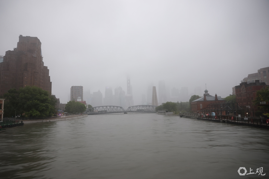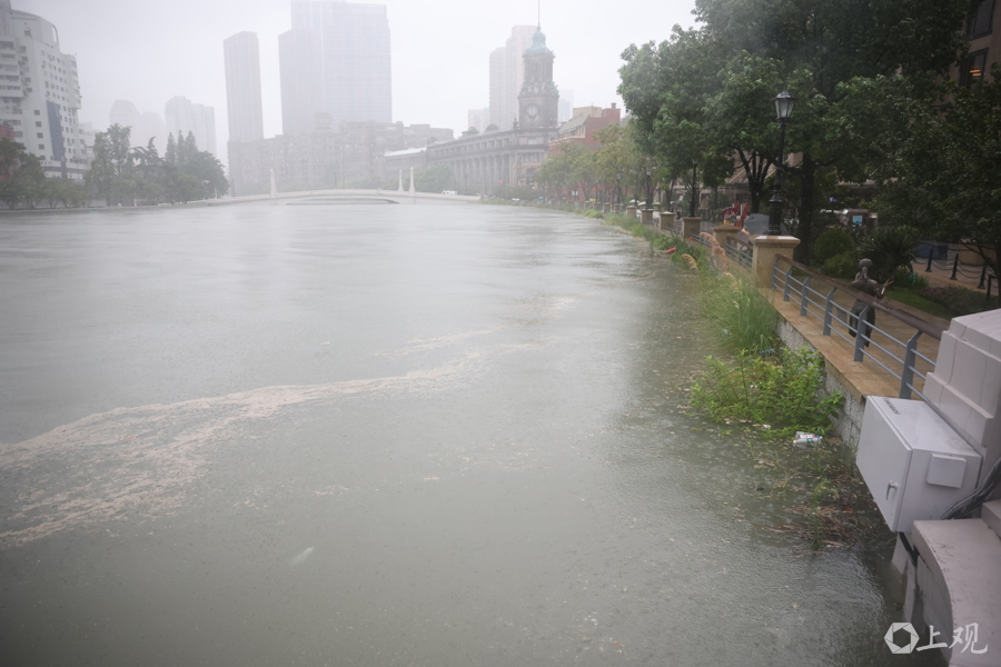 7月30日,台风“竹节草”来袭,给上海带来了大暴雨,不少网友发现上海苏州河水位上涨,乍浦路桥桥名被淹一半。