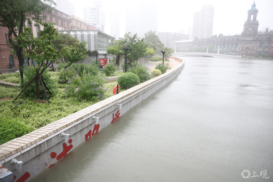 每当台风或暴雨等极端天气条件来临之际,不少市民会发现:黄浦江、苏州河与各区内河的部分河段水位显著上升,甚至出现了“pu出来了”的现象,导致沿岸的部分绿化植被被水淹没,亲水平台上的座椅也被水浸泡。