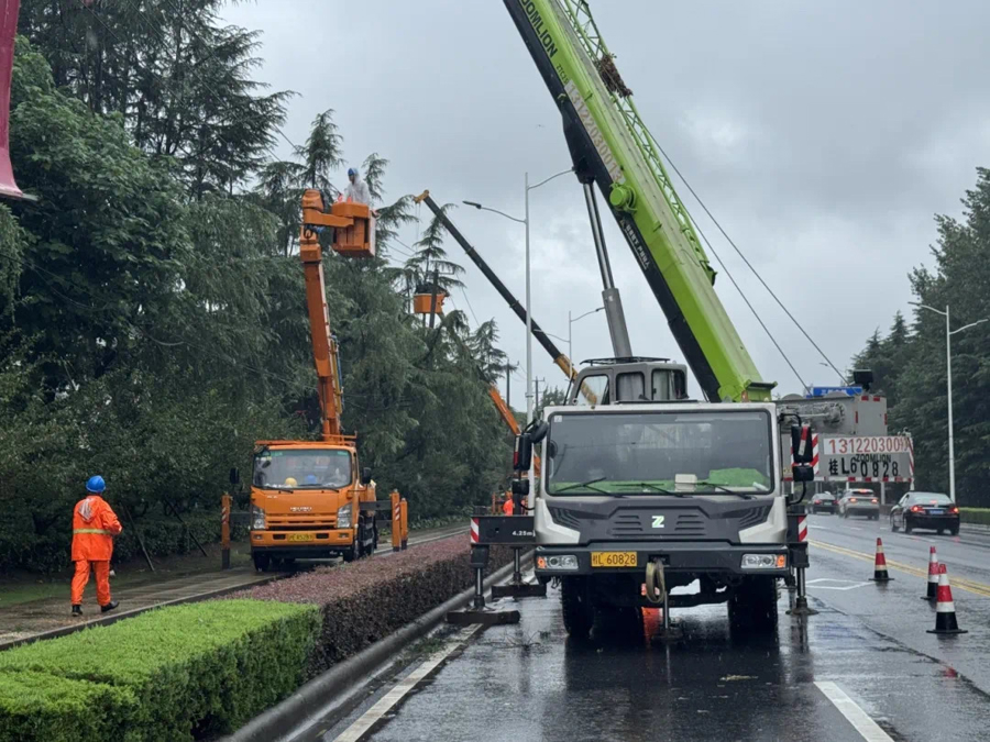 “目前已累计完成对 8 万多棵树木的修剪、清理工作,梳理重要隐患点 140 处。同时,我们与绿容、水务、应急部门以及各街镇保持密切沟通,配备了充足的应急发电车、移动发电机、防水挡板、沙袋等应急防汛物资,做好了应急处置突发事件的准备。”汤晓伟说。