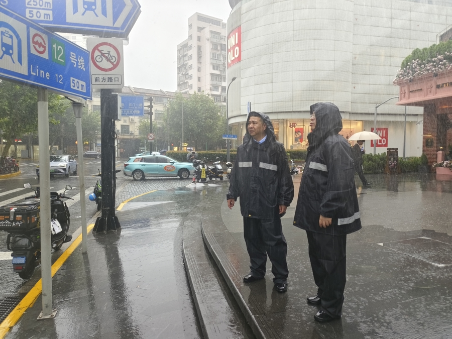 14个街镇综合执法队闻令即动,因地制宜织密辖区“安全网”。南京西路街道综合行政执法队充分发挥党支部战斗堡垒作用,严格落实领导带班与24小时值班制度,密切关注台风雨情汛况。