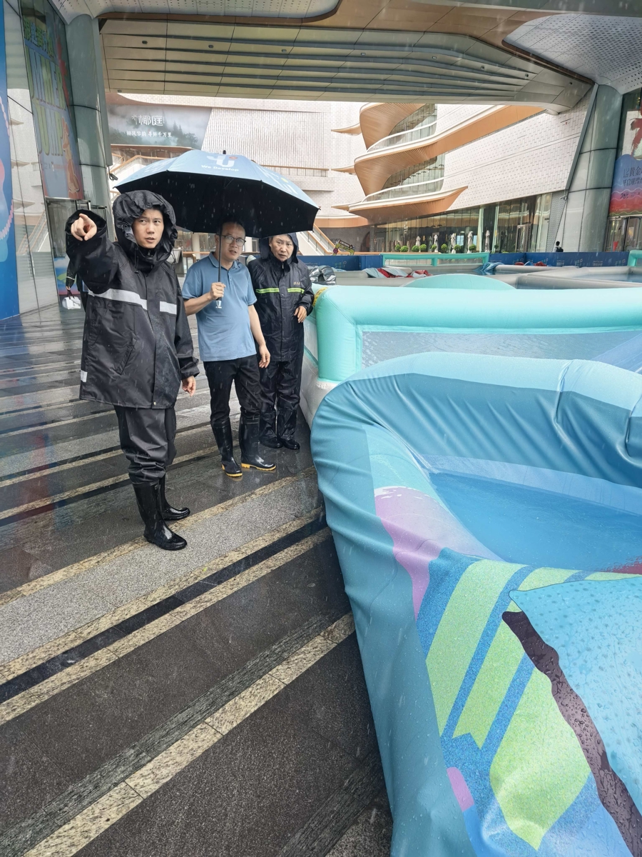 大宁路街道综合行政执法队对辖区内的大型商圈、沿街商铺、建筑工地、老旧公房等重点区域开展拉网式排查,逐店告知防台防汛安全指引,督促商户加固广告牌、清理高空悬挂物。通过面对面宣传、微信群通知等方式,增强群众防灾避险意识。截至目前,各商场户外游艺设施均临时拆装转移做好加固、已拆除存在安全隐患户外广告设施8块。