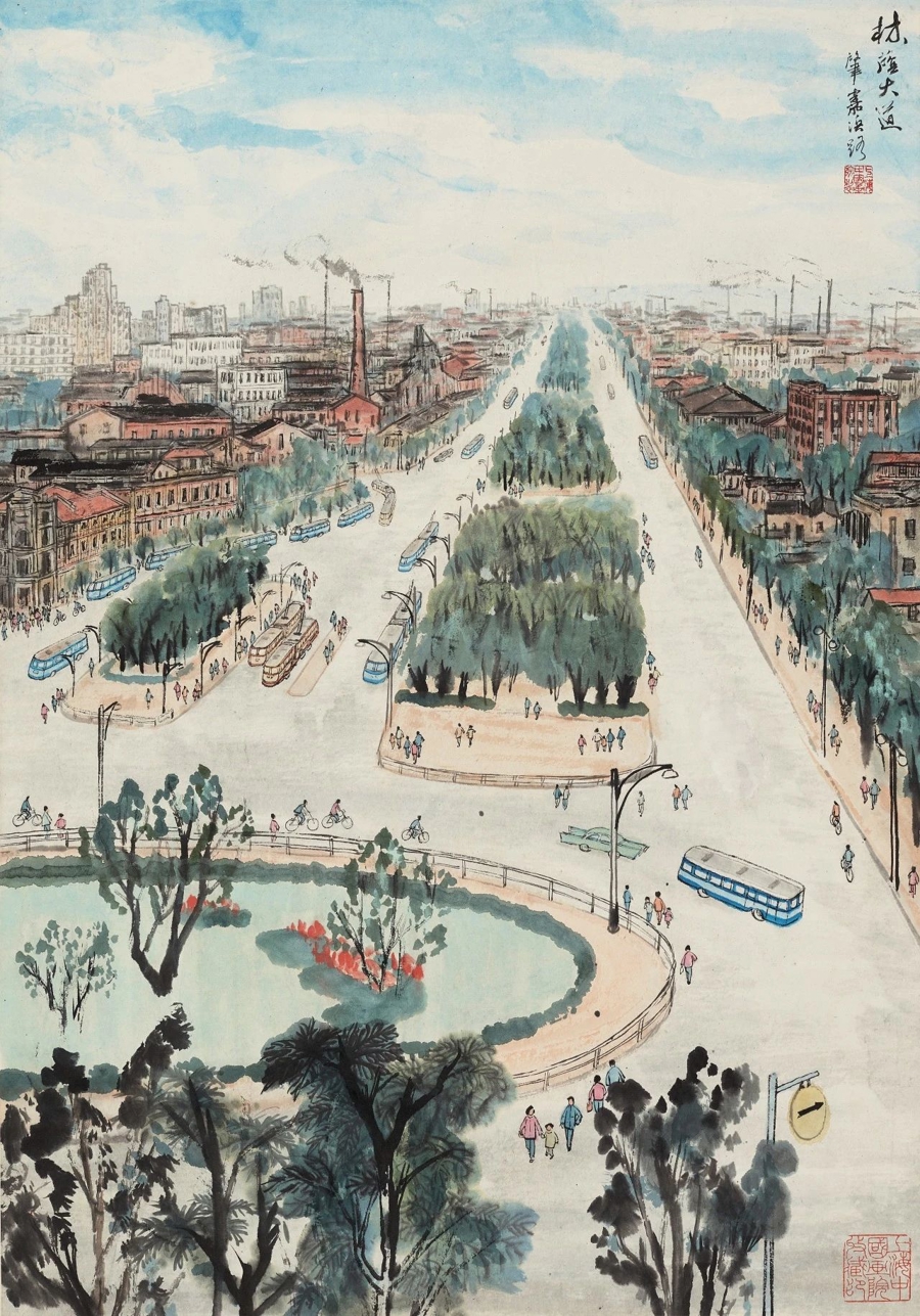 上海从近代以来就是中西融合的最佳试验场,画家们的公园主题创作正是其中一角精微的缩影。只见上海画家在传统笔墨中大胆融入多重技法创新,将“师造化”传统引入都市公园。他们带着速写本走进人民公园、中山公园、龙华苗圃、林荫绿地……用笔墨记录市民休憩场景,使作品兼具自然生机与生活气息。在多元化的艺术探索中,上海画家的公园主题创作既保留了传统笔墨,又注入了时代符号。