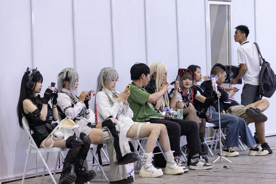 第22届中国国际数码互动娱乐展览会(ChinaJoy)将于8月1日至4日亮相上海新国际博览中心,7月31日,不少展台正进行最后的扫尾工作,演职人员也在进行开幕前的排练走台。