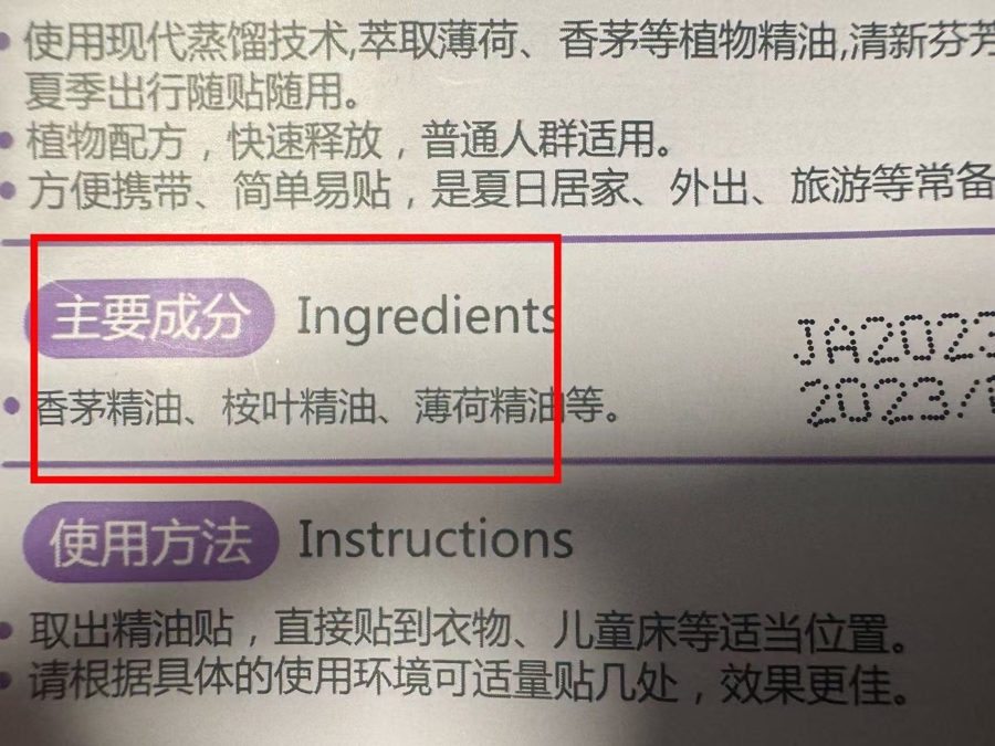 至于柠檬桉叶油、对薄荷烷二醇等成分,主要是通过挥发气味来驱赶蚊虫。市场上常见的驱蚊手环、驱蚊贴等往往含有这类成分或其他带有明显气味的成分。这类产品的实际驱蚊效果受空气流动和环境温度等环境因素影响,不一定稳定。如果消费者选择这类产品,应特别注意使用环境。