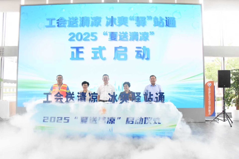 炎炎夏日,酷暑难耐,户外工作者和新就业形态劳动者们依然坚守在工作岗位上,用辛勤的汗水为城市的运转贡献力量。为表达对他们的敬意与关爱,8月1日上午,由上海市总工会指导、市总工会职工服务中心、市职工帮困基金会、徐汇区总工会联合主办的“工会送清凉 冰爽‘驿’站通”2025“夏送清凉”启动仪式在徐汇区滨江党群服务中心站点举行。