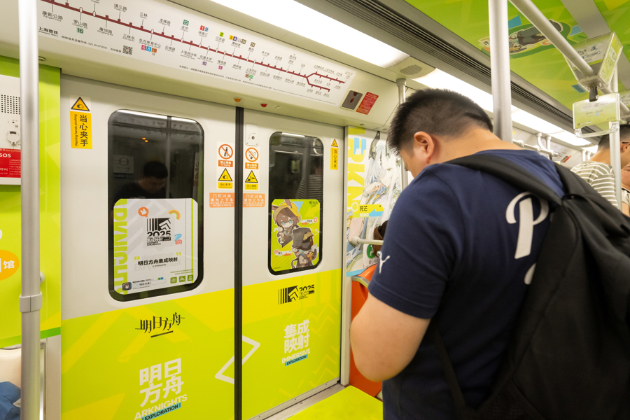 作为“上海之夏”国际消费季徐汇系列活动之一,“2025明日方舟:集成映射——沉浸式线下展”正在徐汇西岸艺术中心举办,吸引各地玩家沉浸式体验“明日方舟”世界。附近的云锦路地铁站,不仅站内有巨幅游戏元素装饰,还有喷绘游戏图案的地铁列车让玩家欣喜不已。