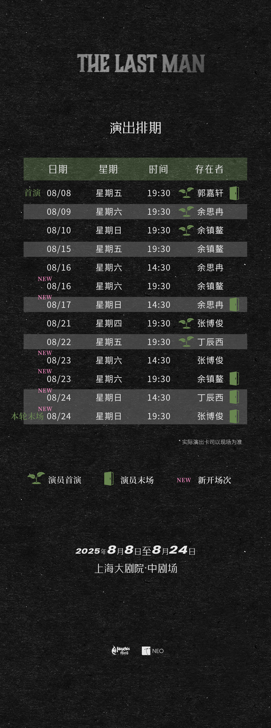 《THE LAST MAN存在者》出品方还透露,将制作中剧场和小剧场两个版本,小剧场作品计划进行驻演,欢迎更多音乐剧演员,甚至跨界的音乐人和艺人来挑战单人音乐剧。