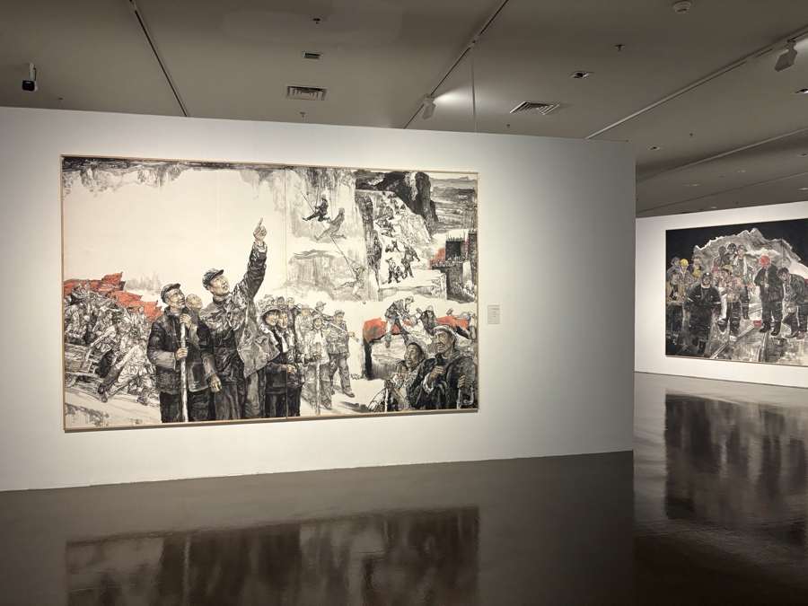 步入展厅,一幅幅作品有的是对《韩熙载夜宴图》笔墨传统的当代诠释,有的是对黄河生态保护的诗意描绘,有的是对农民工、乡村教师等平凡身影的真情刻画。它们没有海派美术“中西合璧”的精巧,但却带着中原人特有的“实”:对传统,实打实地传承;对生活,实打实地观察;对时代,实打实地回应。这些作品,通过多元的观察视角、多样的表达方式,全景式展现了河南的过去、现在和未来。