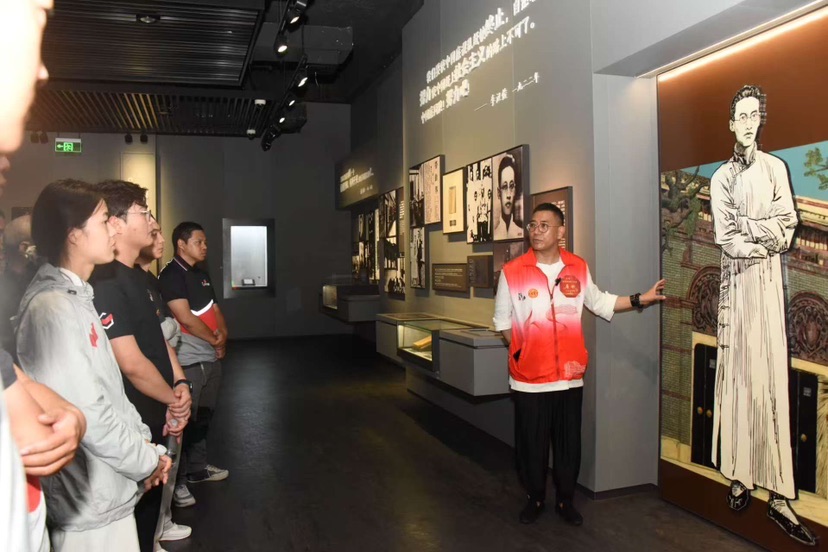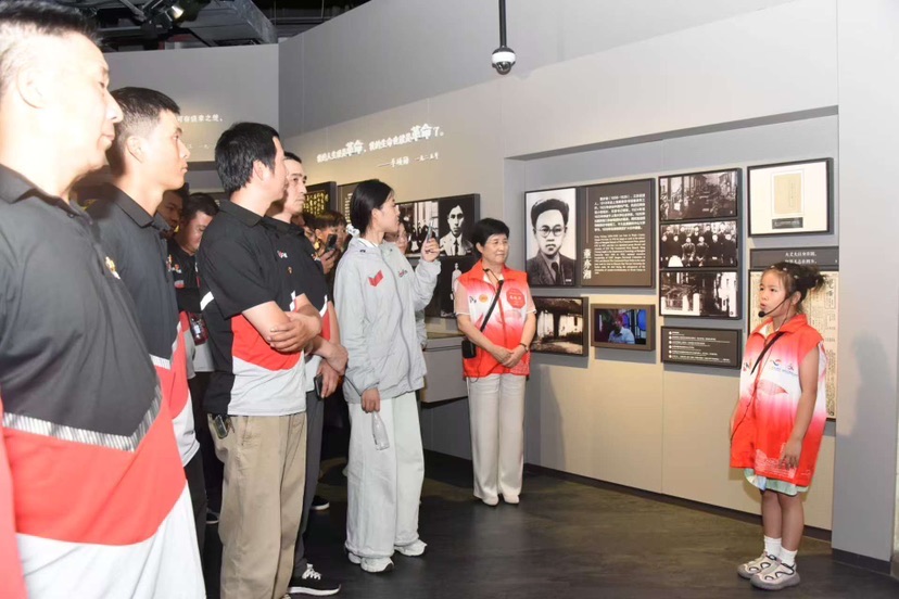 下午的参观团队中,还有来自新就业形态劳动者顺丰同城的快递小哥。他们在忙碌的工作间隙专程前来感受红色文化,区总工会特意为他们送上了防暑降温用品,在炎炎夏日里传递出贴心的慰问,让这场红色文化之旅更添一份温暖与关怀。他们绝大多是党员,在参观过程中还专门重温入党誓词。在龙陵的支持下,参观之余,他们还上了一堂特别应景的国防教育课。